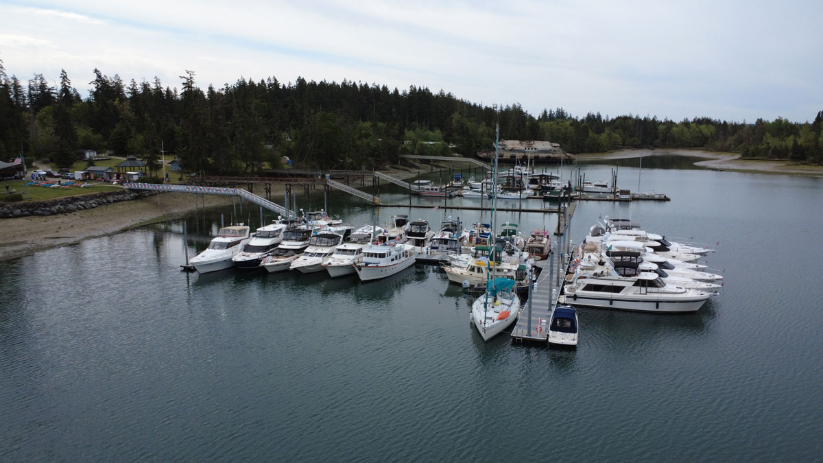 Limited or no water at Oro Bay. 30-amp power on docks. Outhouses on shore, hand washing station during summer months. 2-Horse shoe pits. Fire wood provided for fire place and fire pit. Gas BBQ located in storage building. Garbage dumpsters at top of lot.